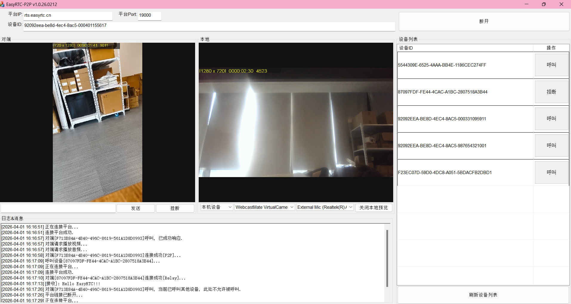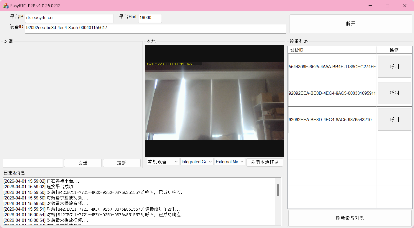 EasyRTC新一代WebP2P视频物联技术,是一种基于ICE技术实现的点对点(P2P)通信平台,平台利用WebP2P、RTC、实时指令等技术,支持实时音视频通信、数据传输等功能,适用于多种物联网应用场景。